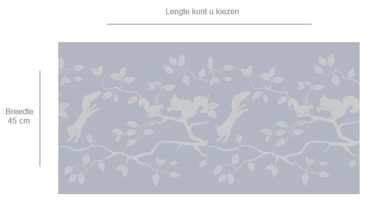 Statisch raamfolie met eekhoorntjes op takken. Het statische glasfolie hecht niet door middel van een plaklaag maar hecht door middel van statische electriciteit. De breedte is 45cm, de lengte snijden wij per staffel van 50cm voor je op maat.